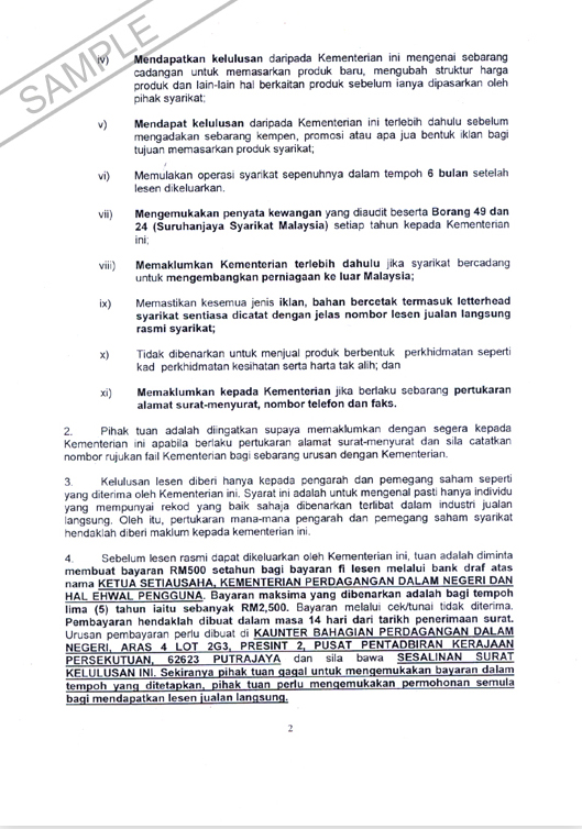 To-date, there are a total of 582 companies which carry a valid Direct Selling License in Malaysia. However, there are other operators who do not carry a valid license. In a report from Ministry of Domestic Trade and Consumer Affairs Malaysia, pyramid selling is an issue of concern because the promoters of pyramid and similar schemes often attempt to disguise themselves as a legitimate direct selling business.